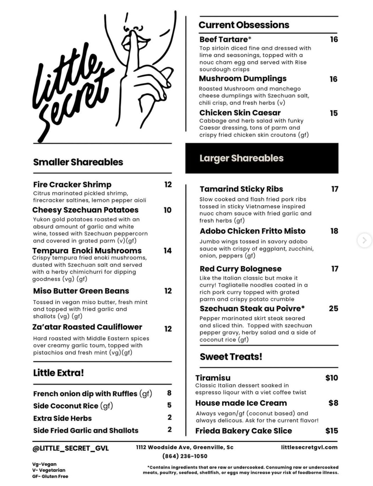 Don’t forget to eat, drink and be merry amidst all the turmoil. We had a very fun date night at Little Secret in West Greenville last week, highly recommend.